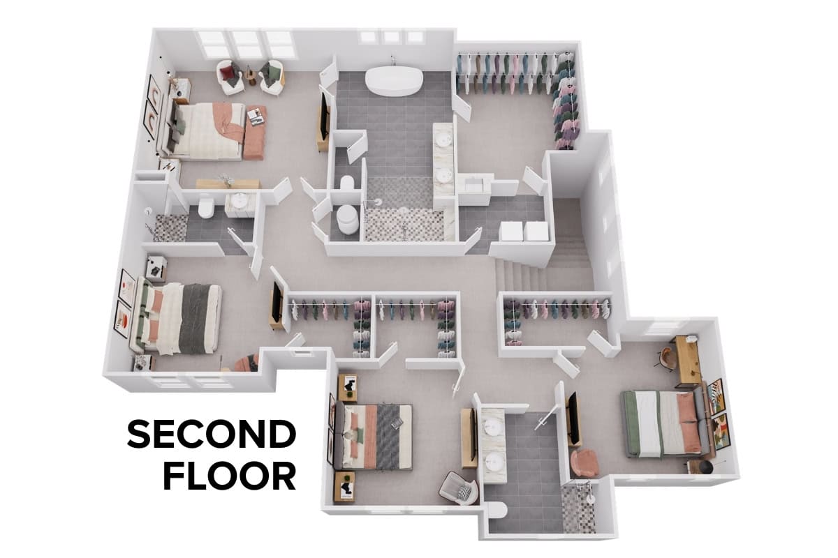 The Clara floor plan by Comerio Homes of Northwest Arkansas is a well-appointed two-story home offering approximately 2,841 square feet of living space, with 4 bedrooms, 3.5 bathrooms, and a 3-car garage. Designed for households that want room to grow, this plan balances open gathering spaces with private retreats.