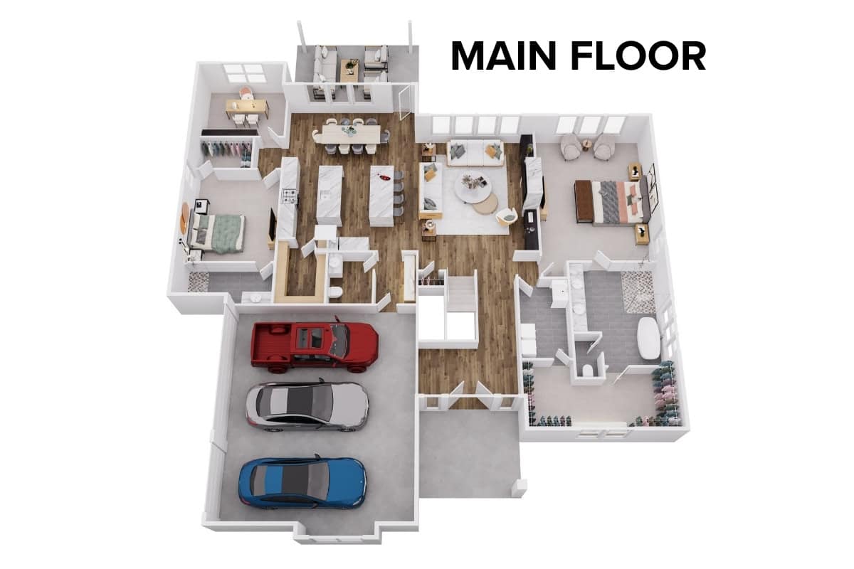 The Lago Side Entry floor plan by Comerio Homes of Northwest Arkansas offers a thoughtfully designed 1.5-story home with approximately 4,250 square feet of well-balanced living space. Designed for homeowners who want room to spread out without sacrificing flow, this plan blends spaciousness with everyday functionality.