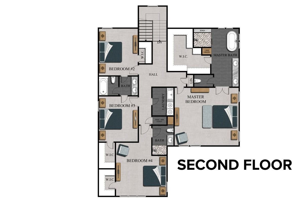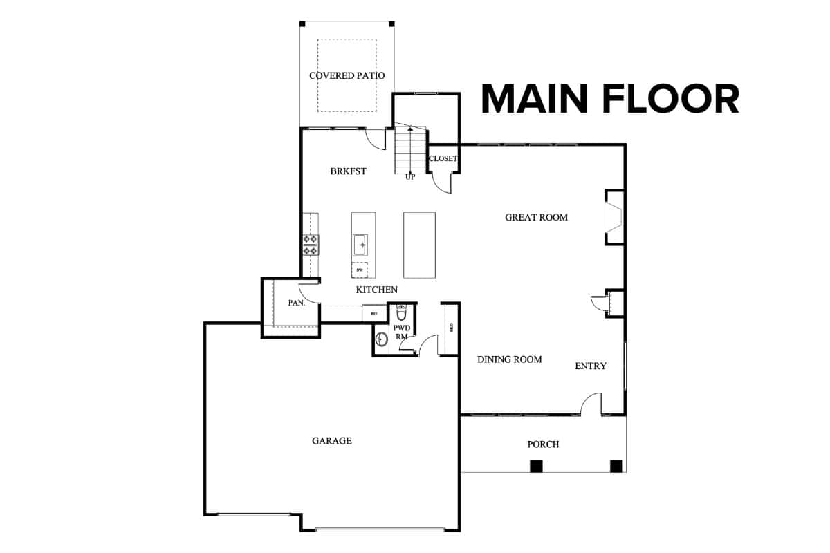The Monroe floor plan by Comerio Homes of Northwest Arkansas offers comfortable, well-organized living in a two-story home with 2,949 square feet of space. Featuring 4 bedrooms, 3.5 bathrooms, and a 3-car garage, this plan is designed to support a variety of household needs.