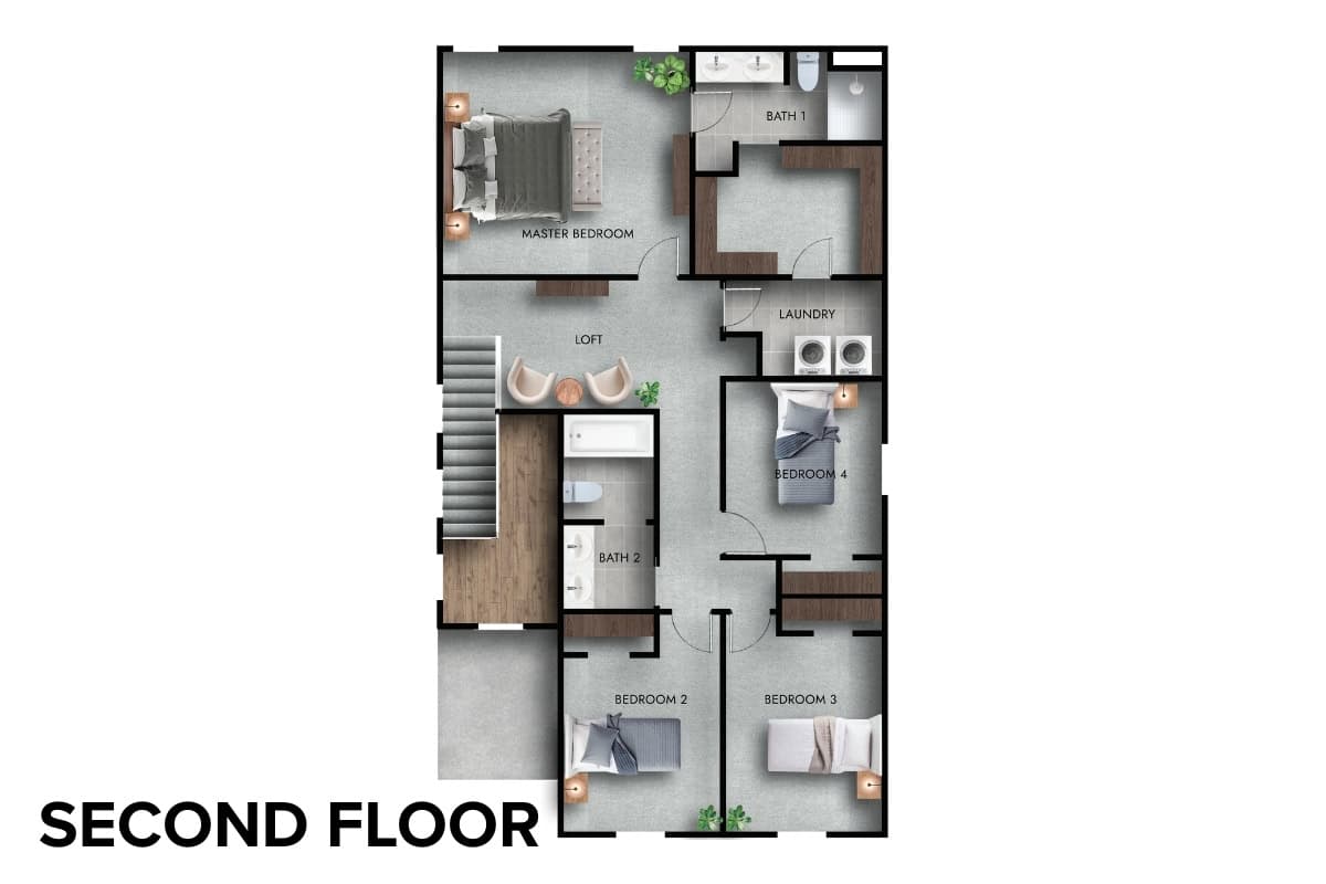 The Pietro floor plan by Comerio Homes of Northwest Arkansas is a well-balanced two-story home offering 2,122 square feet of living space. With 4 bedrooms, 2.5 bathrooms, and a 2-car garage, this plan is designed for homeowners who want defined living areas paired with efficient flow.