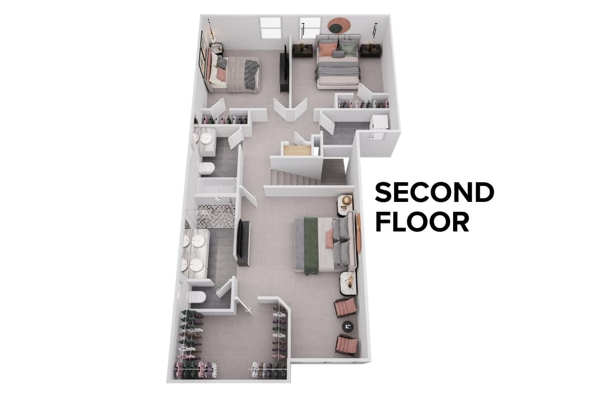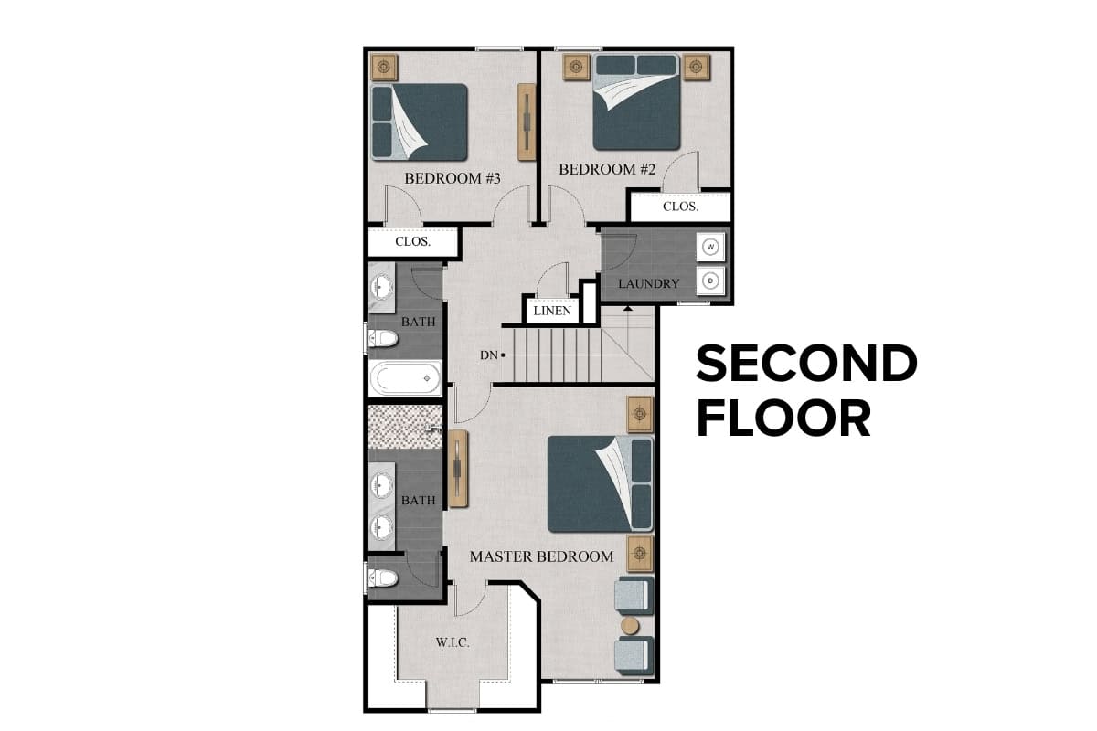 The Rockville SF is a two-story single-family home offering approximately 1,502 square feet of well-designed living space, ideal for families seeking efficiency in new construction homes in Kansas City. With three bedrooms, 2.5 bathrooms, and a two-car garage, this plan balances simplicity with modern comfort.