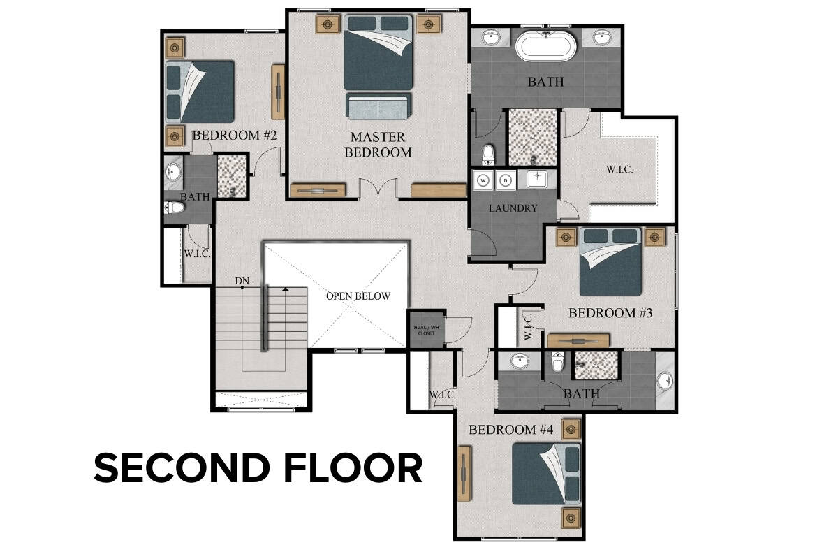 The Toscano floor plan by Comerio Homes of Northwest Arkansas delivers refined living in a spacious two-story home offering 2,978 square feet of thoughtfully designed space. With 5 bedrooms, 4.5 bathrooms, and a 3-car garage, this plan is well suited for households that want room to grow while maintaining a strong sense of organization.